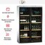 Производители предлагают винные шкафы, оснащенные одной, двумя, тремя и четырьмя камерами, которые могут располагаться как друг под другом, так бок и бок. Самые популярные — однокамерные модели, ассортимент которых особенно широк, но втором месте — двухкамерные. Над заметить, что количество камер не зависит напрямую от габаритов изделия: например, однокамерные модели увеличенных габаритов — далеко не редкость. Их высота может варьироваться в пределах от 14 см до 219 см, а ширина — от 13 см до 150 см.