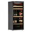 Электронное управление помогает быстро разобраться в том, как функционирует эта модель, и легко настроить все необходимые параметры. Цифровой термометр позволяет контролировать, соблюдаются ли оптимальные условия. Лампочки, расположенные внутри, хорошо подсвечивают бутылки. Всего полок, на которых можно разместить коллекцию, в шкафу 7 шт.