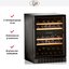Производители предлагают винные шкафы, оснащенные одной, двумя, тремя и четырьмя камерами, которые могут располагаться как друг под другом, так бок и бок. Самые популярные — однокамерные модели, ассортимент которых особенно широк, но втором месте — двухкамерные. Над заметить, что количество камер не зависит напрямую от габаритов изделия: например, однокамерные модели увеличенных габаритов — далеко не редкость. Их высота может варьироваться в пределах от 14 см до 219 см, а ширина — от 13 см до 150 см.