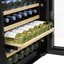 Стеклянная дверь — дополнительный изящный штрих к общему дизайну модели. Специальное покрытие защищает вино от влияния ультрафиолетовых лучей, которые проникают, если шкаф находится в солнечной комнате. Цвет корпуса — черный.