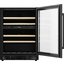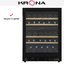 Стеклянная дверь — дополнительный изящный штрих к общему дизайну модели. Специальное покрытие защищает вино от влияния ультрафиолетовых лучей, которые проникают, если шкаф находится в солнечной комнате. Цвет корпуса — черный. Дверь можно перевесить на другую сторону, поэтому вариантов размещения его в доме становится больше.