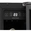 Большинство современных винных шкафов имеет электронное управление, они могут оснащаться обычными цифровыми дисплеями, на которых будет отображаться минимум информации — о включении, температуре в камере и возникших неисправностях. Однако в большинстве моделей используются текстовые сенсорные дисплеи из нескольких сегментов. С помощью кнопок сенсорного меню на этих дисплеях можно отображать и регулировать температуру в каждой зоне отдельно с точностью до градуса, выбирать уровень влажности, задавать дополнительные опции — отключение сигнализации, включение вентиляции и внутреннего освещения, активацию защиты от детей, тип отображения температуры ºF/ºC. Здесь же будут появляться коды ошибок, выданные системой обнаружения неисправностей.