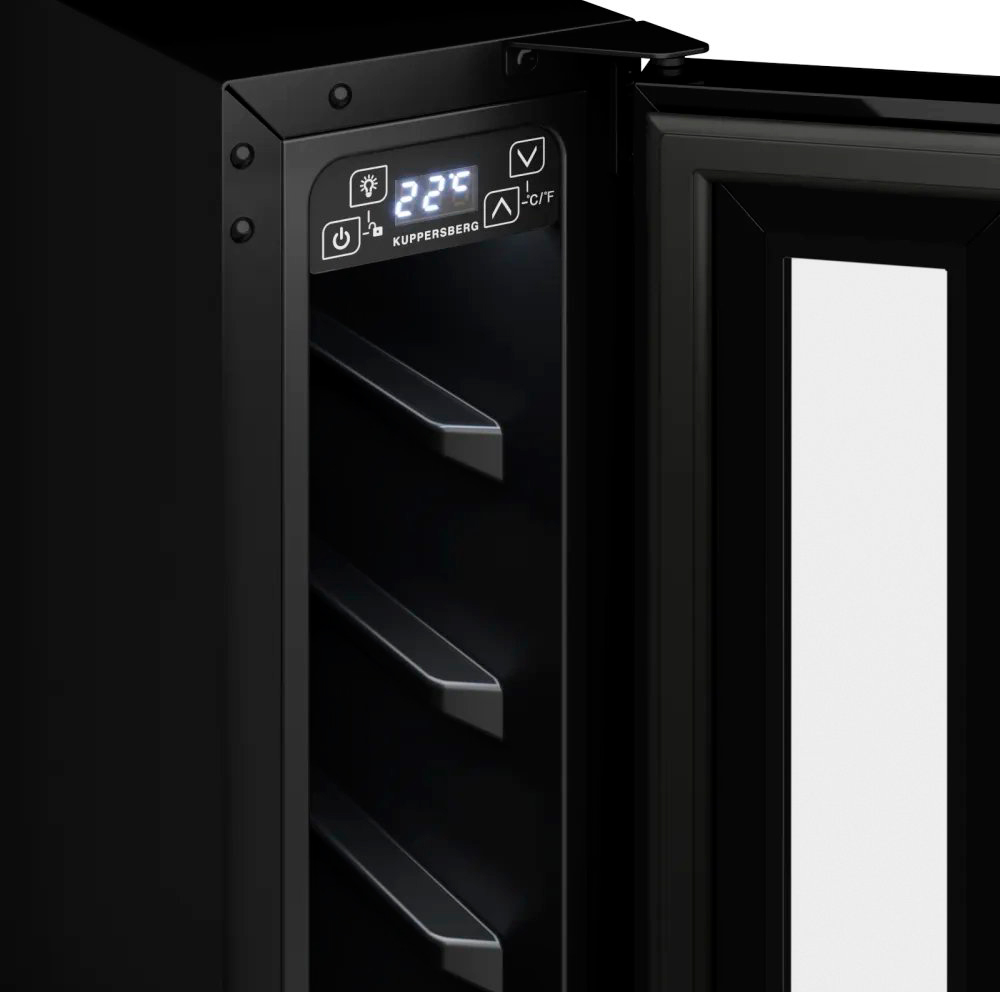Винный холодильник Kuppersberg RBW 15 имеет одну температурную зону, в которой можно разместить бутылки и единовременно выставить только одну комбинацию настроек. Он встраивается в нишу, что удобно, если у вас ограничен метраж помещения. Благодаря компактным размерам данная модель — отличный выбор для офиса, гостиничного номера. Количество бутылок, которое можно разместить с учетом полной комплектации и из расчета объема бутылки 0,75 л, — 7 шт.