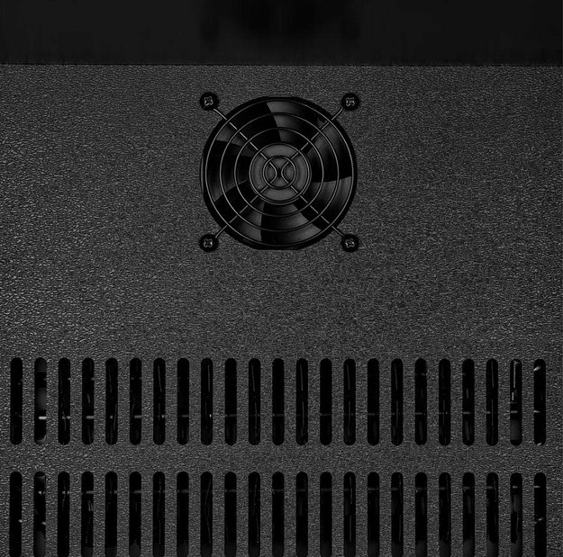 Стеклянная дверь — дополнительный изящный штрих к общему дизайну модели. Цвет корпуса — черный.