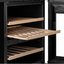 Встраиваемые холодильники для вина оснащаются специальной системой вентиляции: охлаждающая система у них находится в нижней части корпуса спереди. На такие устройства не навешивается мебельный фасад: дверца с затемненным стеклом остается на виду и открывается на достаточно широкий угол для свободного выдвижения деревянных полок.