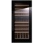 Стеклянная дверь — дополнительный изящный штрих к общему дизайну модели. Специальное покрытие защищает вино от влияния ультрафиолетовых лучей, которые проникают, если шкаф находится в солнечной комнате. Цвет корпуса — черный. Дверь можно перевесить на другую сторону, поэтому вариантов размещения его в доме становится больше.