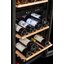 Полки в винных шкафах позволяют размещать бутылки для хранения в горизонтальном положении. Это необходимо, чтобы пробка постоянно смачивалась жидкостью и не пересыхала. Плотно закрытая пробка гарантирует, что внутрь бутылки не проникнет наружный воздух. Кислород, содержащийся в воздухе, может стать причиной ухудшения вкуса вина и даже его скисания. Кроме того, горизонтальное положение позволяет лучше оценить количество осадка. Материал изготовления полок выбирается, исходя из требований, предъявляемых к содержанию коллекции вин. Одним из основных требования является отсутствие или максимальное сокращение вибрации и хорошая фиксация бутылок на месте хранения. Даже если полка выдвигается, бутылки должны оставаться на своем месте. Второе требование исключает применение стеклянных полок, как в обычном холодильнике: на них почти невозможно зафиксировать бутылки.