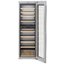 Большое встраиваемое устройство высотой 181,6 см и шириной 60 см позволит заложить на хранение до 83 бутылок объемом 0,75 литра. Модель относится к климатическому классу SN, допускающему использование при наружных температурах от +10°С до +32°С. Температура в камере может регулироваться в диапазоне от +5°C до +20°C. Внутреннее наполнение представляют 10 деревянных полок: 8 из них выкатываются на телескопических направляющих, а еще одна служит для демонстрации коллекции. Циркуляционное охлаждение поддерживает одинаковую температуру во всем объеме камеры. Светодиодная подсветка отличается плавным изменением яркости, в том числе во время включения. Для регулировки температуры служит сенсорная панель управления с ЖК-дисплеем с цифровой индикацией. Предусмотрена световая индикация повышения температуры в камере и прочих неисправностей, а также неплотной закрытой дверцы. Дверца TipOpen открывается нажатием, она оснащена доводчиком SoftSystem. Регулируемые по высоте ножки позволят выровнять устройство при встраивании. Панель управления можно заблокировать, чтобы не допустить изменения настроек. Модель отличает очень низкий уровень шума 34 дБ.