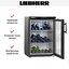 Стильный черный корпус Liebherr WKb 1812 с тонированным стеклом подчеркивает современный дизайн и функциональность. Дверца выполнена с защитой от солнечных лучей, что предотвращает воздействие света на напитки. Ультрафиолетовое покрытие позволяет ценителям любоваться коллекцией, не нарушая внутренний микроклимат. Модель удобна для установки в любом помещении: кухня, гостиная или холл — благодаря своим компактным размерам она легко впишется в любой интерьер, не требуя сложного монтажа.