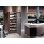Встраиваемые холодильники для вина оснащаются специальной системой вентиляции: охлаждающая система у них находится в нижней части корпуса спереди. На такие устройства не навешивается мебельный фасад: дверца с затемненным стеклом остается на виду и открывается на достаточно широкий угол для свободного выдвижения деревянных полок.