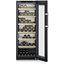 Стеклянная дверь — дополнительный изящный штрих к общему дизайну модели. Специальное покрытие защищает вино от влияния ультрафиолетовых лучей, которые проникают, если шкаф находится в солнечной комнате. Цвет корпуса — черная сталь. Дверь можно перевесить на другую сторону, поэтому вариантов размещения его в доме становится больше. Доводчик делает открытие и закрытие плавным.