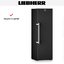 Глухая дверь без стекла надежно защищает вино от влияния ультрафиолетовых лучей, которые проникают, если шкаф находится в солнечной комнате. Это гарантирует также герметичное хранение. Цвет корпуса — черная сталь. Дверь можно перевесить на другую сторону, поэтому вариантов размещения его в доме становится больше. Доводчик делает открытие и закрытие плавным.