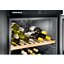 Встраиваемые холодильники для вина оснащаются специальной системой вентиляции: охлаждающая система у них находится в нижней части корпуса спереди. На такие устройства не навешивается мебельный фасад: дверца с затемненным стеклом остается на виду и открывается на достаточно широкий угол для свободного выдвижения деревянных полок.