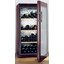 Дверца у большинства винных шкафов изготавливается из многослойного тонированного стекла. Такой материал, с одной стороны, позволяет оценивать коллекцию вин визуально, не открывая дверцу, в условиях стабильной температуры и влажности. С другой стороны, затемненное стекло с УФ-фильтром в виде напыления или специальной пленки надежно изолирует винные бутылки негативного воздействия ультрафиолетового излучения. Несколько слоев стекла обеспечивают при этом дополнительную защиту. Очень часто стекло в дверце заключается в рамку из дерева или металла. Натуральный или окрашенный металл или дерево не только способствуют прочности конструкции, но и превращают винный холодильник, особенно отдельно стоящий, в эффектный элемент обстановки.