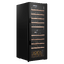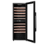 Стеклянная дверь — дополнительный изящный штрих к общему дизайну модели. Специальное покрытие защищает вино от влияния ультрафиолетовых лучей, которые проникают, если шкаф находится в солнечной комнате. Цвет корпуса — черный.