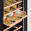 Электронное управление помогает быстро разобраться в том, как функционирует эта модель, и легко настроить все необходимые параметры. На дисплее отображаются данные, которые собирают датчики в камере. Лампочки, расположенные внутри, хорошо подсвечивают бутылки. Всего полок, на которых можно разместить коллекцию, в шкафу 10 шт. Пространство тщательно вентилируется, чтобы воздух не застаивался, не попадали посторонние запахи.