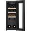 Стеклянная дверь — дополнительный изящный штрих к общему дизайну модели. Специальное покрытие защищает вино от влияния ультрафиолетовых лучей, которые проникают, если шкаф находится в солнечной комнате. Цвет корпуса — черный.