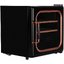 Стеклянная дверь — дополнительный изящный штрих к общему дизайну модели. Специальное покрытие защищает вино от влияния ультрафиолетовых лучей, которые проникают, если шкаф находится в солнечной комнате. Цвет корпуса — черный.