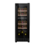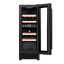 Стеклянная дверь — дополнительный изящный штрих к общему дизайну модели. Специальное покрытие защищает вино от влияния ультрафиолетовых лучей, которые проникают, если шкаф находится в солнечной комнате. Цвет корпуса — черный.