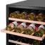 Стеклянная дверь — дополнительный изящный штрих к общему дизайну модели. Специальное покрытие защищает вино от влияния ультрафиолетовых лучей, которые проникают, если шкаф находится в солнечной комнате. Цвет корпуса — черный.