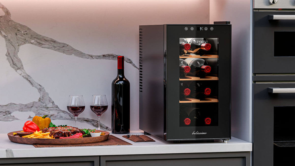 Винный холодильник Meyvel MV08-TBF1-Next имеет одну температурную зону, в которой можно разместить бутылки и единовременно выставить только одну комбинацию настроек. Он устанавливается отдельно, что удобно, если у вас есть специальное помещение — кладовая, погреб и т.д. Благодаря компактным размерам данная модель — отличный выбор для офиса, гостиничного номера. Количество бутылок, которое можно разместить с учетом полной комплектации и из расчета объема бутылки 0,75 л, — 8 шт.