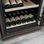 Стеклянная дверь — дополнительный изящный штрих к общему дизайну модели. Специальное покрытие защищает вино от влияния ультрафиолетовых лучей, которые проникают, если шкаф находится в солнечной комнате. Хранение становится еще безопаснее и герметичнее благодаря нескольким слоям стекол. Цвет корпуса — темный шоколад.