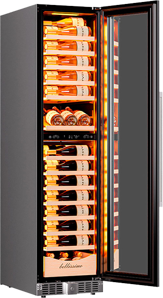 Двухтемпературные предназначены для хранения в разных условиях красного и белого вина. Трехтемпературные — для белого, красного, игристого. Мульти — система хранения из более чем трех зон с разным климатом.