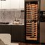 Ширина винного шкафа, как и другие их габариты, обязательно учитывается при выборе модели для домашнего или профессионального использования. Встраиваемые и отдельно стоящие модели выпускаются в самом широком ассортименте, так что разброс значений максимально велик. Неизменным спросом пользуются винные шкафы стандартной ширины — от 40 до 80 см, в современном и классическом стиле. Для встраиваемых шкафов наиболее удобной является ширина 60 см, позволяющая устанавливать их в кухонную тумбу или колонну. Вместимость их может быть самой различной и зависит в большей степени от высоты прибора. Маленькие винные шкафы с размещением на столешнице или даже с креплением к стене, рассчитанные на хранение от одной до десяти бутылок, могут иметь минимальную ширину от 13 см. На полках у них обычно помещается не более 5 бутылок, и используются они для охлаждения вина перед подачей. Большие винные шкафы с несколькими камерами и температурными зонами для длительного хранения и созревания разных сортов вина могут иметь ширину до 180 см, а максимальное значение этого параметра может составить 300 см. Как правило, это отдельно стоящие модели в деревянном корпусе с камерами side-by-side.