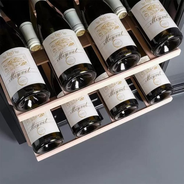 Винный холодильник Meyvel MV133-KBF1 имеет одну температурную зону, в которой можно разместить бутылки и единовременно выставить только одну комбинацию настроек. Он устанавливается отдельно, что удобно, если у вас есть специальное помещение — кладовая, погреб и т.д. Количество бутылок, которое можно разместить с учетом полной комплектации и из расчета объема бутылки 0,75 л, — 133 шт.