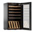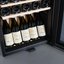 Стеклянная дверь — дополнительный изящный штрих к общему дизайну модели. Специальное покрытие защищает вино от влияния ультрафиолетовых лучей, которые проникают, если шкаф находится в солнечной комнате. Хранение становится еще безопаснее и герметичнее благодаря нескольким слоям стекол. Цвет корпуса — черный.