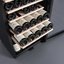 Производители предлагают винные шкафы, оснащенные одной, двумя, тремя и четырьмя камерами, которые могут располагаться как друг под другом, так бок и бок. Самые популярные — однокамерные модели, ассортимент которых особенно широк, но втором месте — двухкамерные. Над заметить, что количество камер не зависит напрямую от габаритов изделия: например, однокамерные модели увеличенных габаритов — далеко не редкость. Их высота может варьироваться в пределах от 14 см до 219 см, а ширина — от 13 см до 150 см.