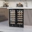 Производители предлагают винные шкафы, оснащенные одной, двумя, тремя и четырьмя камерами, которые могут располагаться как друг под другом, так бок и бок. Самые популярные — однокамерные модели, ассортимент которых особенно широк, но втором месте — двухкамерные. Над заметить, что количество камер не зависит напрямую от габаритов изделия: например, однокамерные модели увеличенных габаритов — далеко не редкость. Их высота может варьироваться в пределах от 14 см до 219 см, а ширина — от 13 см до 150 см.