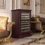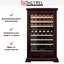 Стеклянная дверь — дополнительный изящный штрих к общему дизайну модели. Специальное покрытие защищает вино от влияния ультрафиолетовых лучей, которые проникают, если шкаф находится в солнечной комнате. Хранение становится еще безопаснее и герметичнее благодаря нескольким слоям стекол. Цвет корпуса — вишня.