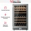 Стеклянная дверь — дополнительный изящный штрих к общему дизайну модели. Специальное покрытие защищает вино от влияния ультрафиолетовых лучей, которые проникают, если шкаф находится в солнечной комнате. Хранение становится еще безопаснее и герметичнее благодаря нескольким слоям стекол. Цвет корпуса — нержавеющая сталь. Дверь можно перевесить на другую сторону, поэтому вариантов размещения его в доме становится больше.