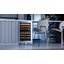 Встраиваемые холодильники для вина оснащаются специальной системой вентиляции: охлаждающая система у них находится в нижней части корпуса спереди. На такие устройства не навешивается мебельный фасад: дверца с затемненным стеклом остается на виду и открывается на достаточно широкий угол для свободного выдвижения деревянных полок.