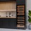 Ширина винного шкафа, как и другие их габариты, обязательно учитывается при выборе модели для домашнего или профессионального использования. Встраиваемые и отдельно стоящие модели выпускаются в самом широком ассортименте, так что разброс значений максимально велик. Неизменным спросом пользуются винные шкафы стандартной ширины — от 40 до 80 см, в современном и классическом стиле. Для встраиваемых шкафов наиболее удобной является ширина 60 см, позволяющая устанавливать их в кухонную тумбу или колонну. Вместимость их может быть самой различной и зависит в большей степени от высоты прибора. Маленькие винные шкафы с размещением на столешнице или даже с креплением к стене, рассчитанные на хранение от одной до десяти бутылок, могут иметь минимальную ширину от 13 см. На полках у них обычно помещается не более 5 бутылок, и используются они для охлаждения вина перед подачей. Большие винные шкафы с несколькими камерами и температурными зонами для длительного хранения и созревания разных сортов вина могут иметь ширину до 180 см, а максимальное значение этого параметра может составить 300 см. Как правило, это отдельно стоящие модели в деревянном корпусе с камерами side-by-side.