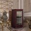 Стеклянная дверь — дополнительный изящный штрих к общему дизайну модели. Специальное покрытие защищает вино от влияния ультрафиолетовых лучей, которые проникают, если шкаф находится в солнечной комнате. Хранение становится еще безопаснее и герметичнее благодаря нескольким слоям стекол. Цвет корпуса — вишня.