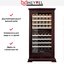 Электронное управление помогает быстро разобраться в том, как функционирует эта модель, и легко настроить все необходимые параметры. На дисплее отображаются данные, которые собирают датчики в камере. Лампочки, расположенные внутри, хорошо подсвечивают бутылки. Всего полок, на которых можно разместить коллекцию, в шкафу 9 шт.