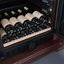 Электронное управление помогает быстро разобраться в том, как функционирует эта модель, и легко настроить все необходимые параметры. На дисплее отображаются данные, которые собирают датчики в камере. Лампочки, расположенные внутри, хорошо подсвечивают бутылки. Всего полок, на которых можно разместить коллекцию, в шкафу 9 шт.