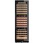 Электронное управление помогает быстро разобраться в том, как функционирует эта модель, и легко настроить все необходимые параметры. На дисплее отображаются данные, которые собирают датчики в камере. Лампочки, расположенные внутри, хорошо подсвечивают бутылки. Всего полок, на которых можно разместить коллекцию, в шкафу 14 шт.