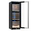 Стеклянная дверь — дополнительный изящный штрих к общему дизайну модели. Специальное покрытие защищает вино от влияния ультрафиолетовых лучей, которые проникают, если шкаф находится в солнечной комнате. Цвет корпуса — черный. Дверь можно перевесить на другую сторону, поэтому вариантов размещения его в доме становится больше.