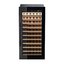 Стеклянная дверь — дополнительный изящный штрих к общему дизайну модели. Специальное покрытие защищает вино от влияния ультрафиолетовых лучей, которые проникают, если шкаф находится в солнечной комнате. Хранение становится еще безопаснее и герметичнее благодаря нескольким слоям стекол. Цвет корпуса — черный. Дверь можно перевесить на другую сторону, поэтому вариантов размещения его в доме становится больше.