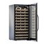 Электронное управление помогает быстро разобраться в том, как функционирует эта модель, и легко настроить все необходимые параметры. На дисплее отображаются данные, которые собирают датчики в камере. Лампочки, расположенные внутри, хорошо подсвечивают бутылки. Всего полок, на которых можно разместить коллекцию, в шкафу 11 шт.