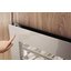 Стеклянная дверь — дополнительный изящный штрих к общему дизайну модели. Специальное покрытие защищает вино от влияния ультрафиолетовых лучей, которые проникают, если шкаф находится в солнечной комнате. Цвет корпуса — жемчужный. Доводчик делает открытие и закрытие плавным.