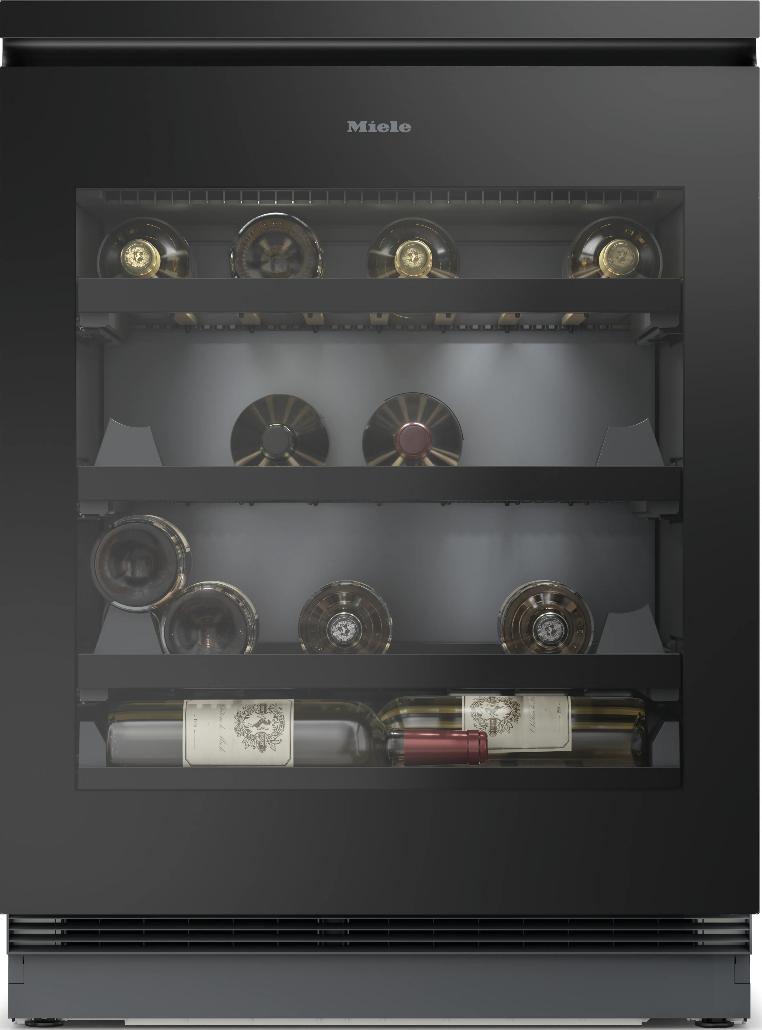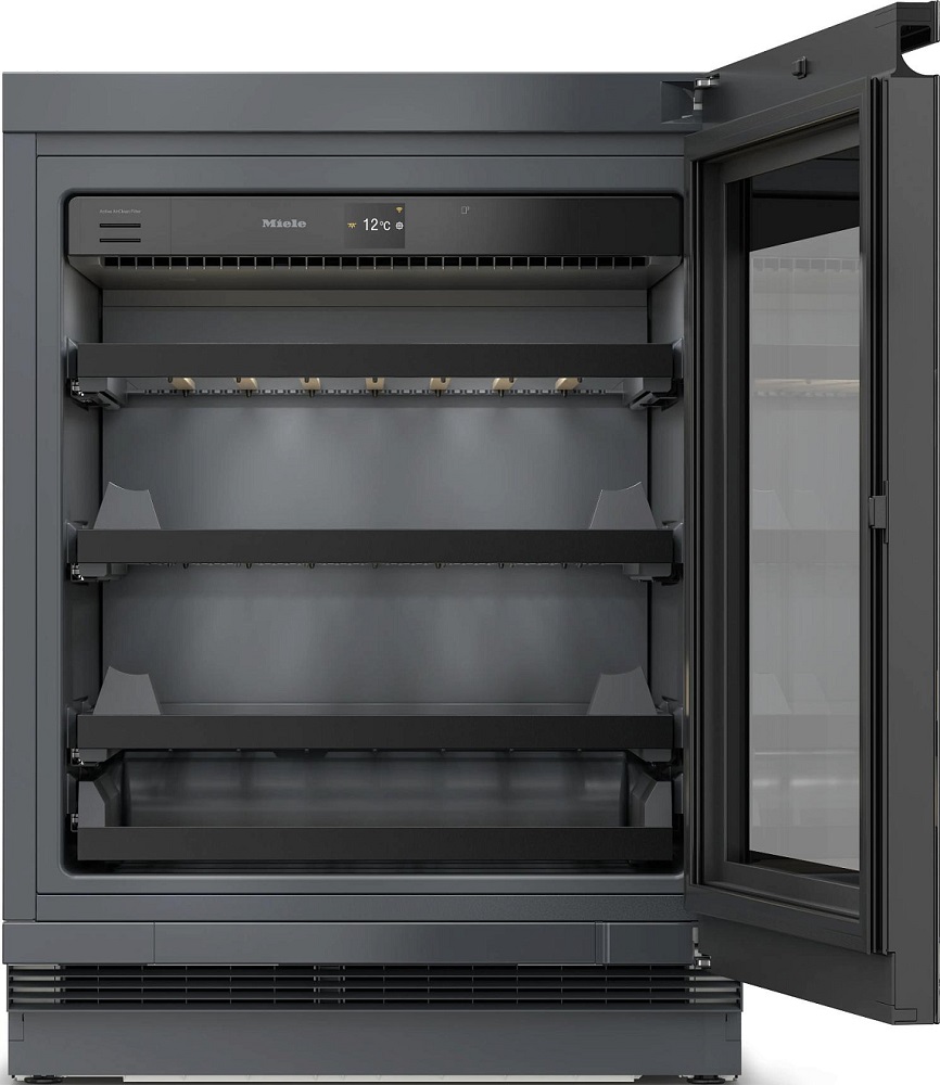 Винный холодильник Miele KWTUS 7054 F имеет одну температурную зону, в которой можно разместить бутылки и единовременно выставить только одну комбинацию настроек. Он встраивается в нишу, что удобно, если у вас ограничен метраж помещения. Благодаря компактным размерам данная модель — отличный выбор для офиса, гостиничного номера. Количество бутылок, которое можно разместить с учетом полной комплектации и из расчета объема бутылки 0,75 л, — 44 шт.
