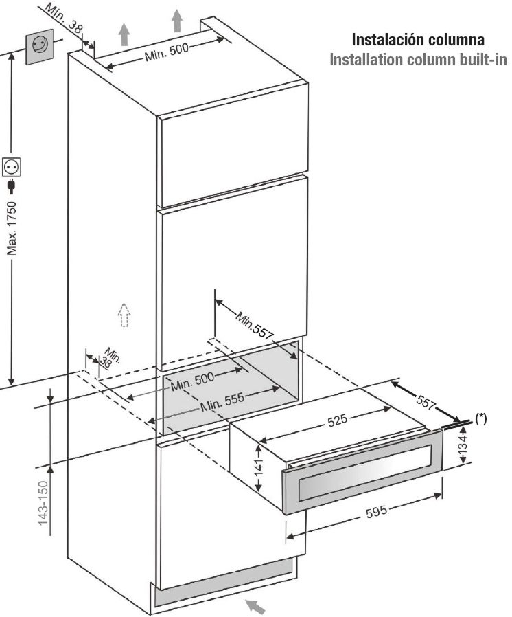 Высота встраиваемых винных шкафов может варьироваться примерно в таком же диапазоне. Стандартные размеры встраиваемых винных шкафов должна соответствовать габаритам мебели, так что высота их может быть несколько меньше, чем у отдельно стоящих моделей.