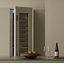 Электронное управление помогает быстро разобраться в том, как функционирует эта модель, и легко настроить все необходимые параметры. На дисплее отображаются данные, которые собирают датчики в камере. Лампочки, расположенные внутри, хорошо подсвечивают бутылки. Всего полок, на которых можно разместить коллекцию, в шкафу 12 шт.