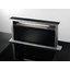 Вытяжки, встраиваемые в столешницу — эффективная инновация, которая подойдет для установки в кухне любой площади. Такие вытяжки размещаются за варочной поверхностью или рядом с ней. В отключенном состоянии всасывающая панель находится под столешницей, но после включения одной или нескольких конфорок она автоматически выдвигается при помощи специального лифтового механизма. Загрязненный воздух улавливается, не успевая распространиться по помещению. Когда вытяжка убрана, на виду остается только сенсорная панель управления. Недостатком подобных моделей является только сравнительно высокая цена.