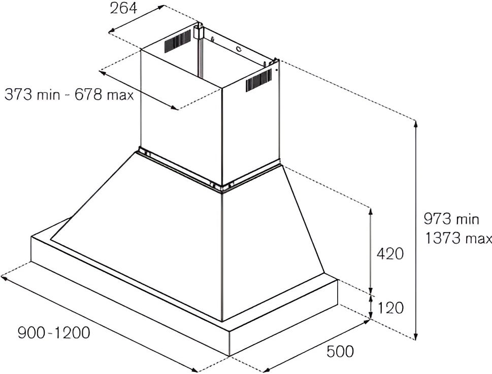 Эти модели выделяются своей формой — треугольным или более фигурным куполом, которым располагается ровно над варочной панелью. Такая конструкция считается традиционной и вместе с коробом воздуховода напоминает классическую каминную трубу. Подойдет стандартной и большой кухне в зависимости от ширины купола.