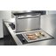 Вытяжки, встраиваемые в столешницу — эффективная инновация, которая подойдет для установки в кухне любой площади. Такие вытяжки размещаются за варочной поверхностью или рядом с ней. В отключенном состоянии всасывающая панель находится под столешницей, но после включения одной или нескольких конфорок она автоматически выдвигается при помощи специального лифтового механизма. Загрязненный воздух улавливается, не успевая распространиться по помещению. Когда вытяжка убрана, на виду остается только сенсорная панель управления. Недостатком подобных моделей является только сравнительно высокая цена.